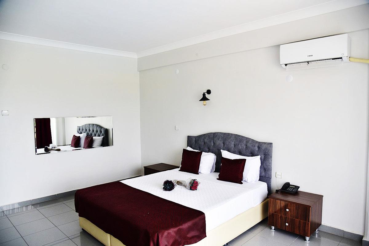 Our suite rooms with sea-pool view; In addition to the fascinating view of the Kaz Mountains, it also hosts a panoramic sea view of the Northern Aegean. Our 1+1 Suite room is 57 m2, one room has a double bed and the other room has a seating group and a single bed. There is a TV unit in both rooms. It can also accommodate up to five people with the seating group that converts into a bed. Our suite rooms are equipped with a desk-wireless-mini refrigerator-hair dryer-telephone-split air conditioner-electric kettle. The tea and coffee set-up that greets our guests at the entrance is our offering to our guests.